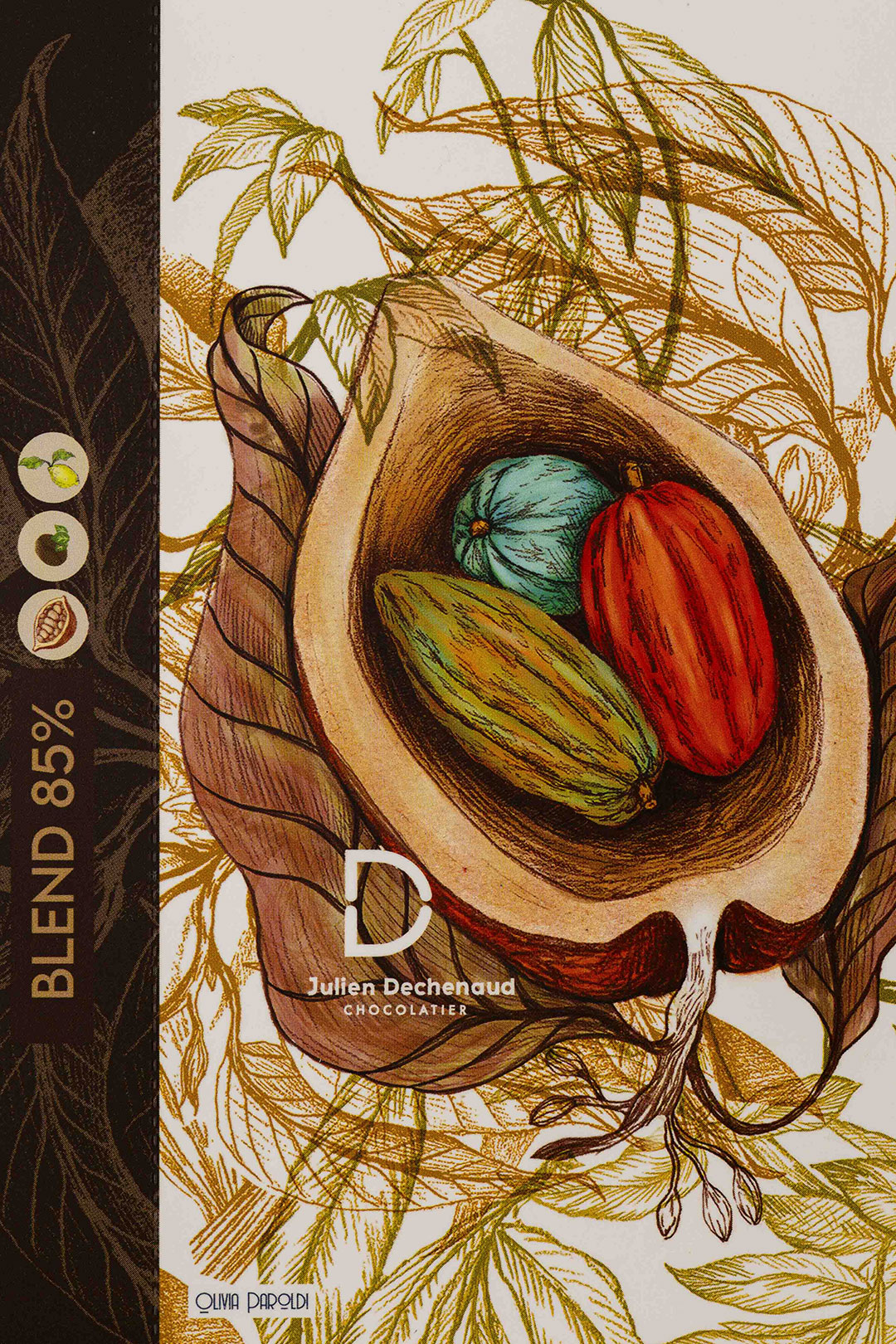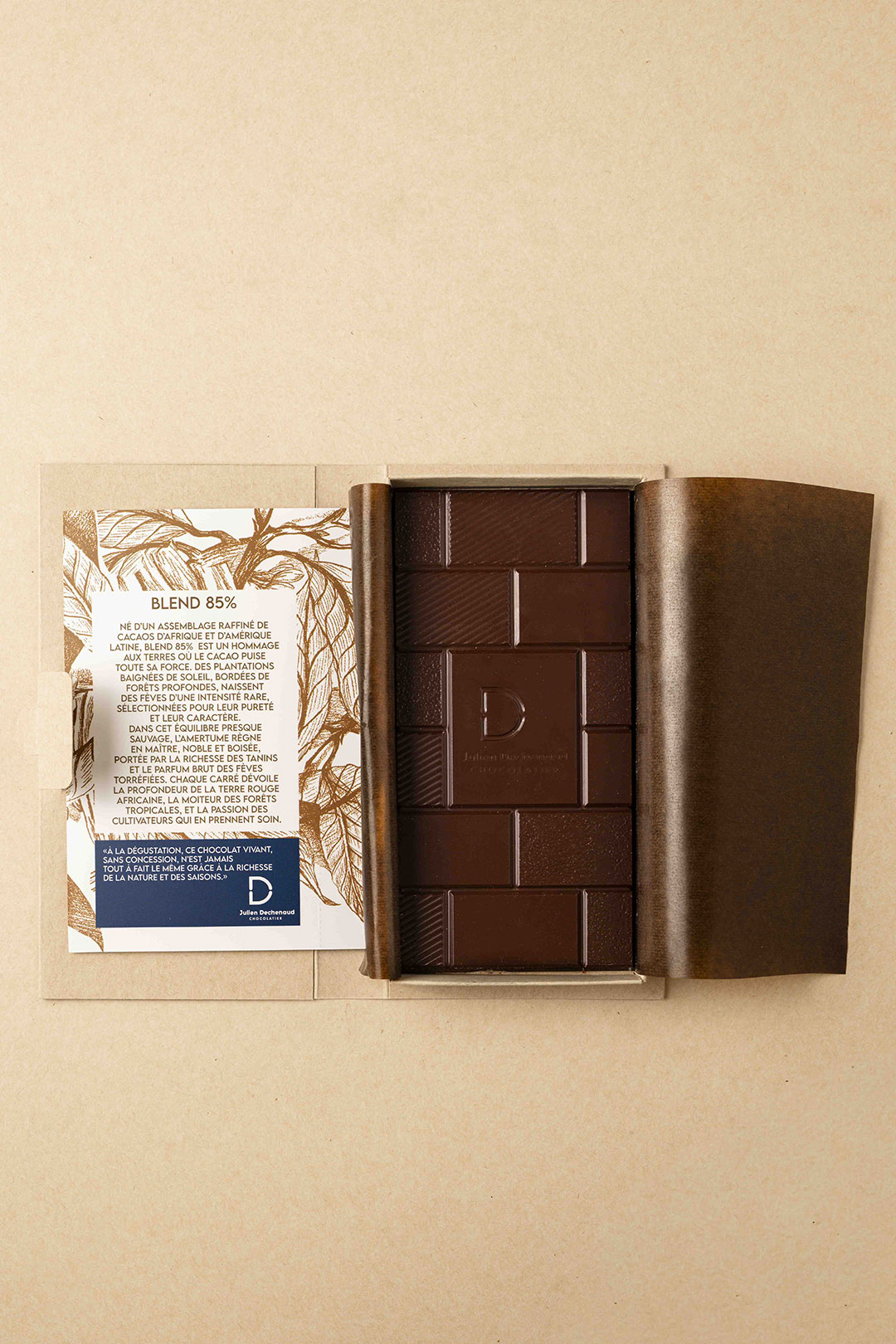 Tablette chocolat noir 85% aux notes d’amertume, cacaotées et une légère acidité.