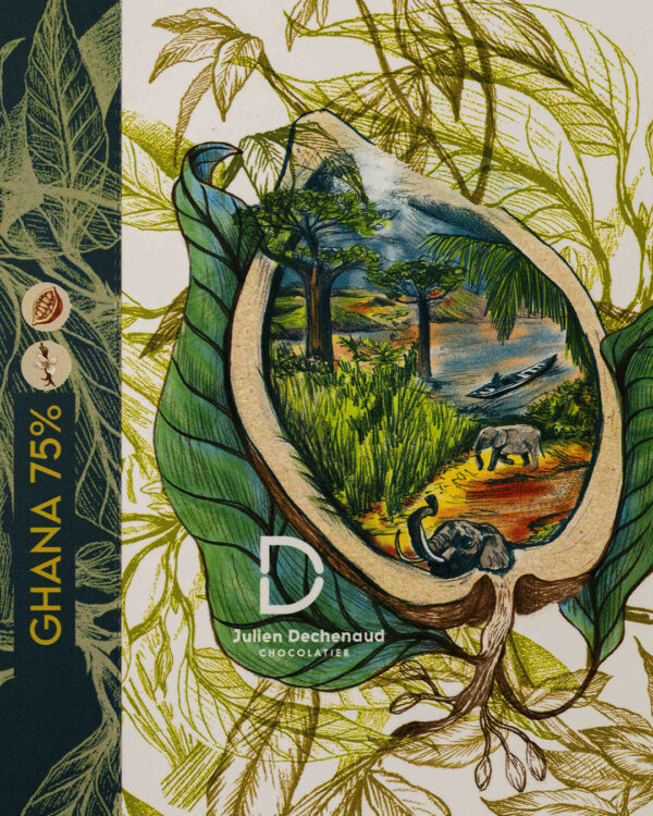 Assortiment de 5 ganaches pure Origine au chocolat noir à 72% : Madagascar, Ghana, Jamaïque, Venezuela et Pérou. Ce coffret contient 18 bonbons de chocolats, pensée par le chef Julien Dechenaud.
