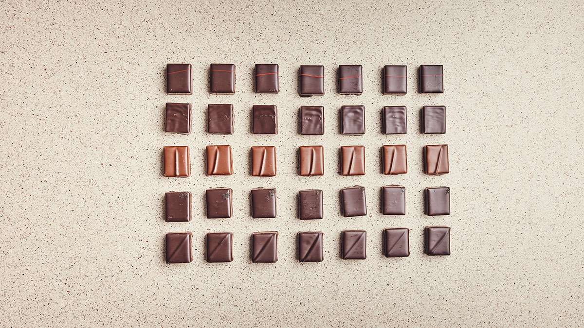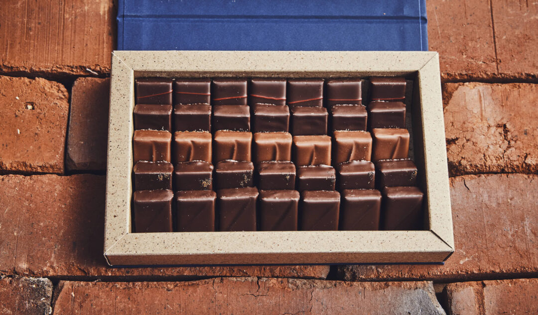 Découvrez un éventail de ganaches aux notes franches et complexes : Sarriette, Vanille à l’huile d’olive, Yuzu, Fève de Tonka, Framboise, Mousse caramel, Lacée Brésil 50 %, Fruit de la passion, Vanille de Madagascar, Citron vert, Menthe, Jasmin, Poivre de Timut, Miel, Café du Costa Rica. Cette sélection audacieuse de 20 ganaches parfumées sublime des associations de saveurs aussi délicates qu’inattendues.