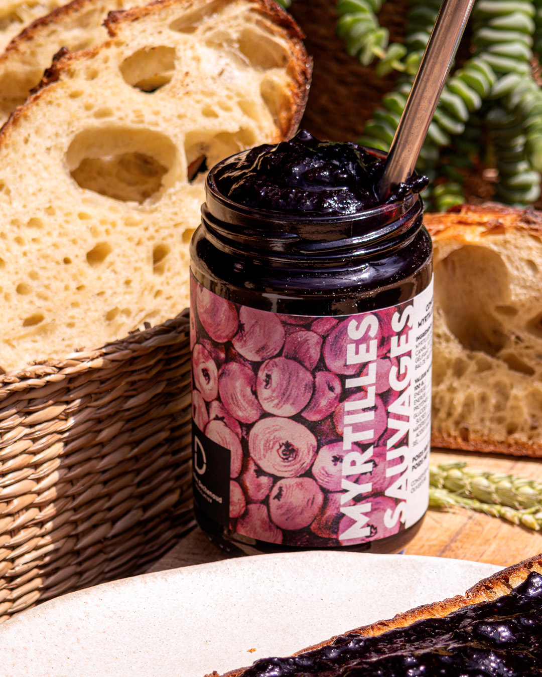 Notre sélection exclusive de confitures artisanales : myrtilles sauvages, abricots, oranges, framboises.
