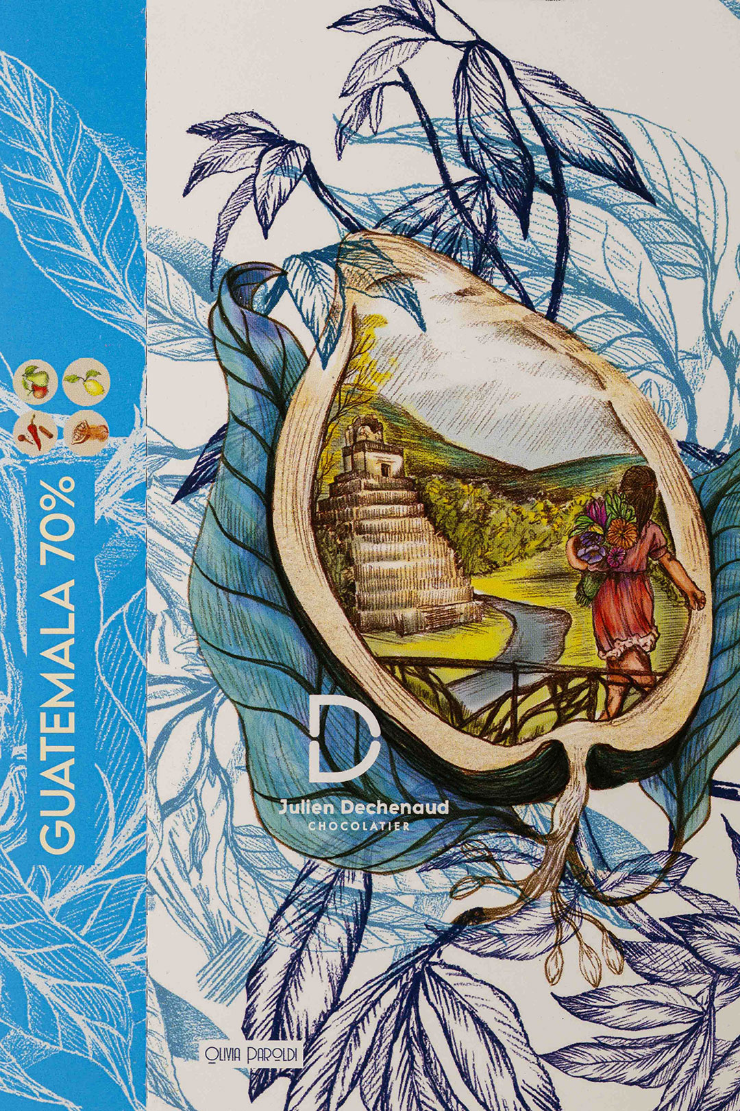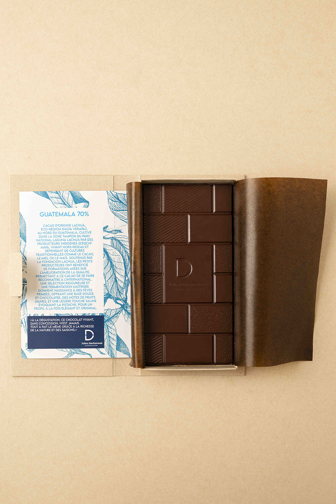 Tablette chocolat noir 70% Guatemala avec des notes de fruits jaunes, cacao grillé, épicées et acidulées.