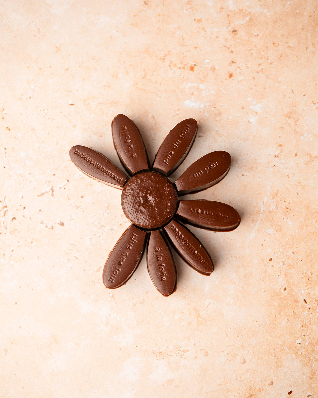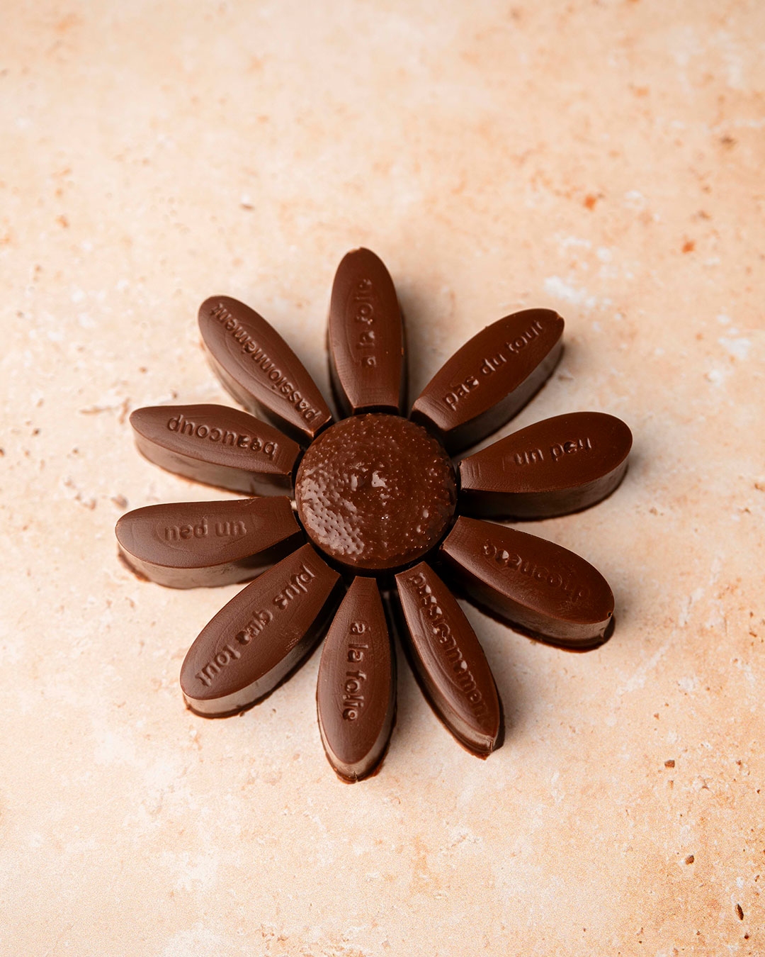Le Chef vous propose une création pour tous, seul ou à plusieurs vous pourrez détacher les petits pétales de goût différent qui vous rappelons l’enfance du jeu « je t’aime, beaucoup, passionnément… »