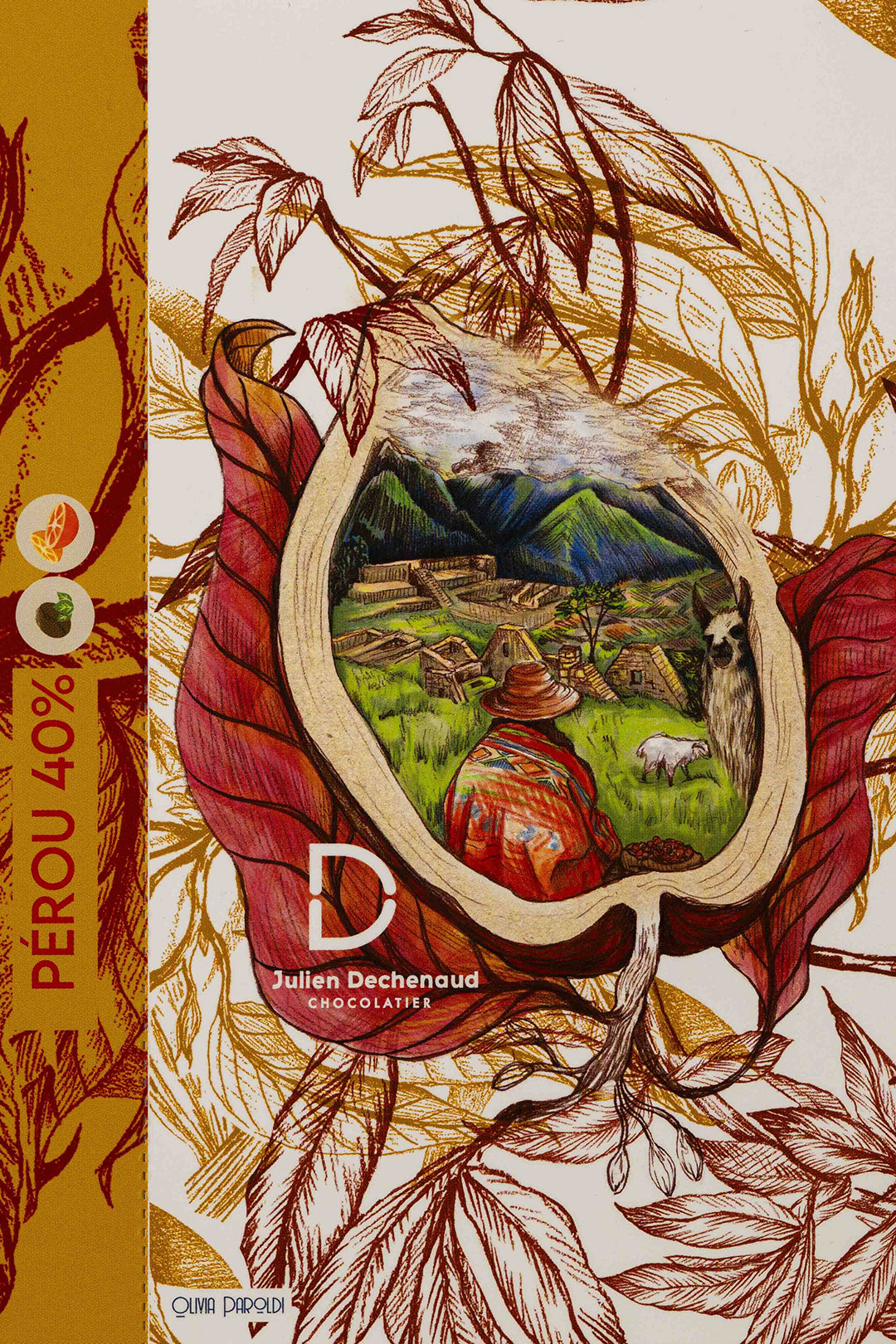 Chocolat au lait 40% Pérou aux notes de fruits noirs, cerise madérisée et une astringence toute en finesse.