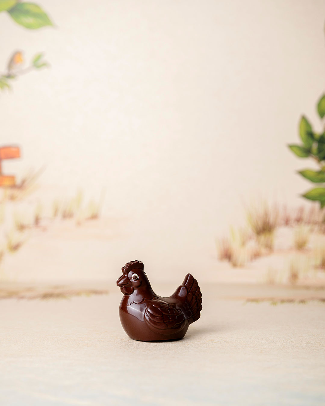 Poulette chocolat noir 70% Cameroun et lait végan 48% garni de fritures sèches et pralinés