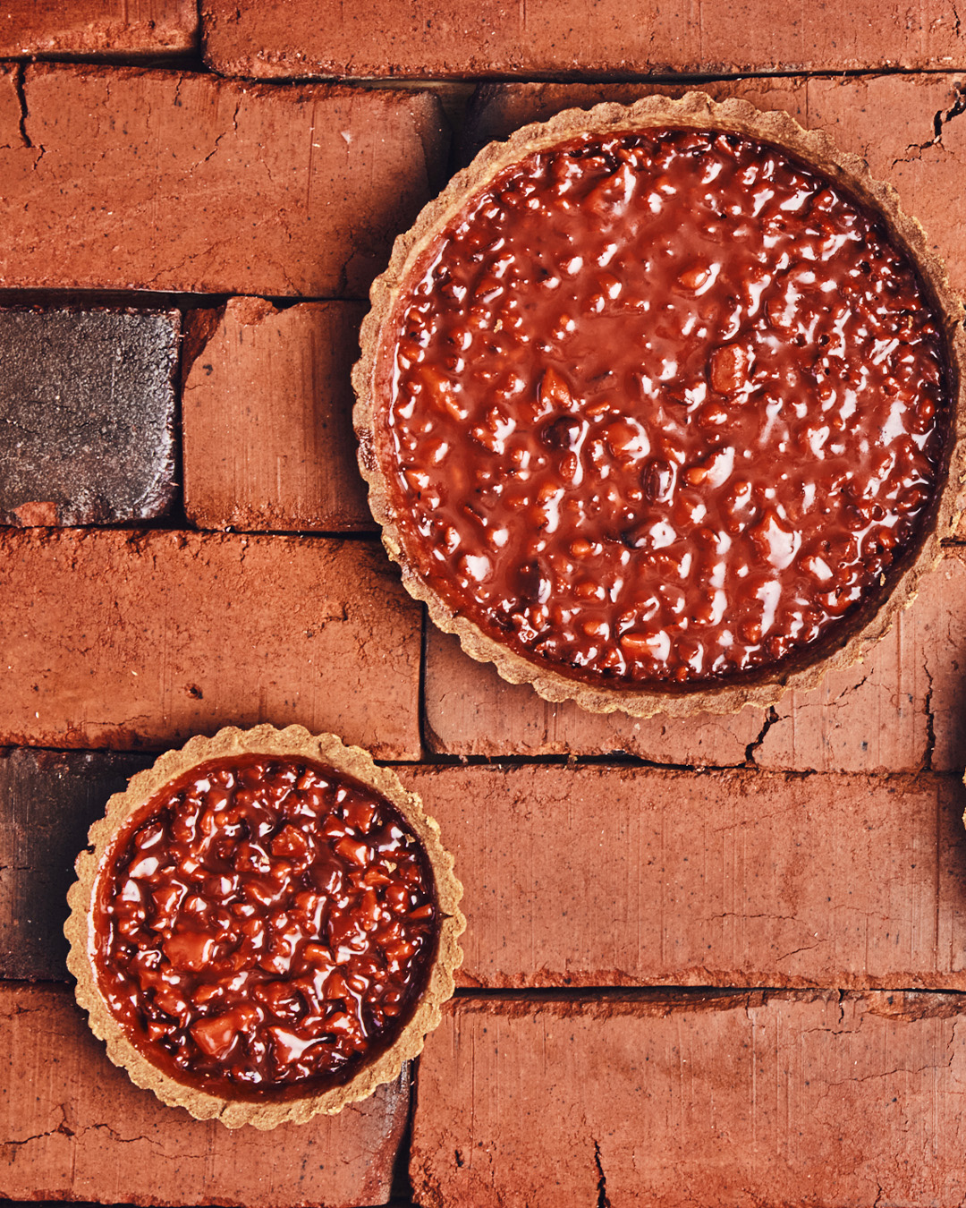 Tarte aux pralines roses disponible en 5 formats différents, de la portion individuelle à la pâtisserie pour 10 personnes.